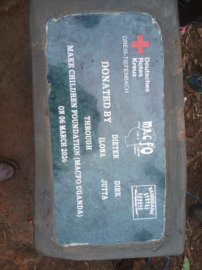St. Timothy Bunyere Primary School has long faced challenges in accessing clean and safe drinking water, with pupils and staff relying on distant and often unsafe sources. In response to this pressing need, the Macfo Foundation, with sponsorship from the Global Nature Fund (GNF) and the Hannover 96 Fans Club, successfully installed a borehole at the school. This project was further supported through generous donations by Jutta, Ilona, Dirk, and Dieter from the Bambisana Group, together with DRK OV Dreis-Tiefenbach e.V. The initiative marks a significant step toward improving water access, health, and learning conditions, ensuring a reliable and sustainable source of clean water for the entire school community.
